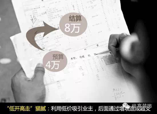 大半积蓄,到装修时已经捉襟见肘了。因此为了省钱,业主往往会选择报价更低的。为了抢到生意,不少装修公司往往会以低报价来吸引业主,而后在装修过程中再加各种额外项目,让业主不得不为此再支付费用。很常见的情况是,装修公司开始报的价是4万,最后结算下来可能8万都不止。