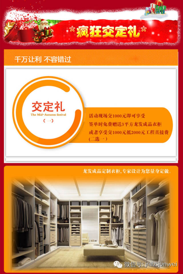 龙发装饰送衣柜、橱柜、送家电大礼了,龙发装饰于12.21日举办“圣诞狂欢-最厚一礼”活动。