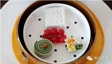 印糕、葛粉、四喜素饺中式江南小食三款,用小蒸笼盛上,本乡本土,色泽素雅,红加仑点缀秀美,很是养眼。