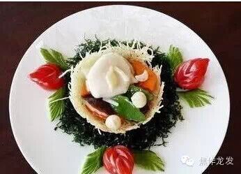 中国美食既讲究“色香味”,也讲究形美。这些菜肴姹紫嫣红,摆放也颇有意味。例如鲜带摆在土豆丝作成的“雀巢”上,就取自成语“筑巢迎凤”。