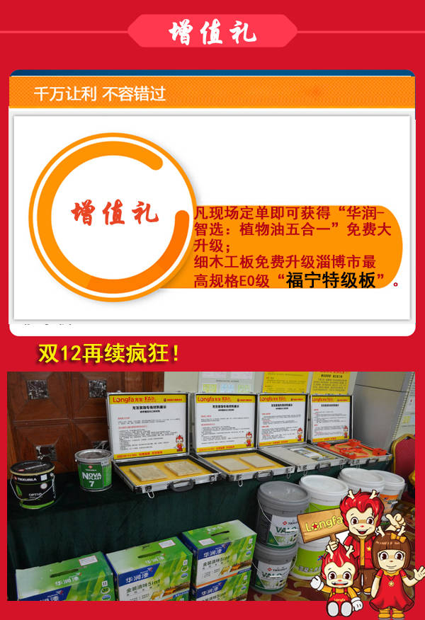 淄博龙发装饰将重磅推出七重礼、主材1折、送黄金、水星家纺等特大钜惠,更有品质升级、工程升级为您保驾护航;让您省钱装修乐无忧!!
