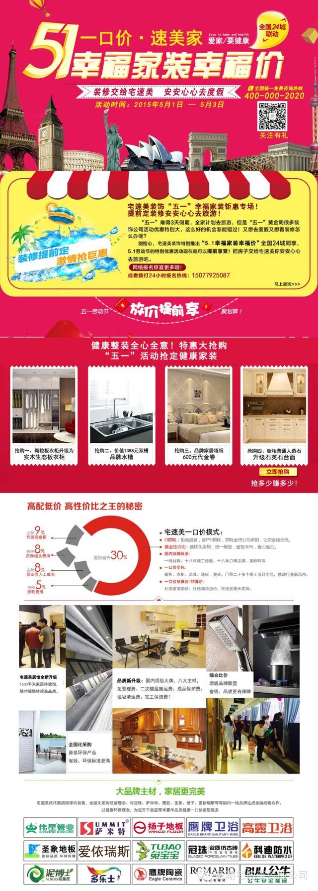 为了让各位业主朋友五一出行旅游的同时又不错过装修公司在“五一”黄金周的大优惠活动,宅速美公司特推出"5.1·幸福家装幸福价"钜惠活动。在此次“五一黄金周”家装会活动中,芜湖宅速美装饰豪礼再次将其“又好又便宜”的“幸福家装幸福价”推向了高点。