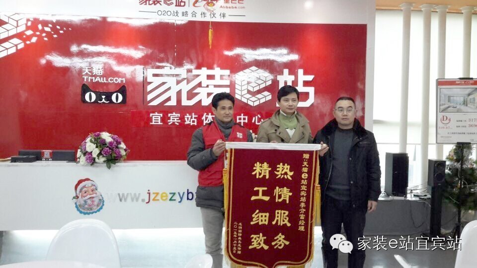 2015年1月17日,家装e站宜宾站迎来了首批完工的装修业主———龙润国际的王先生,送来的“精工细致,热情服务”的锦旗。