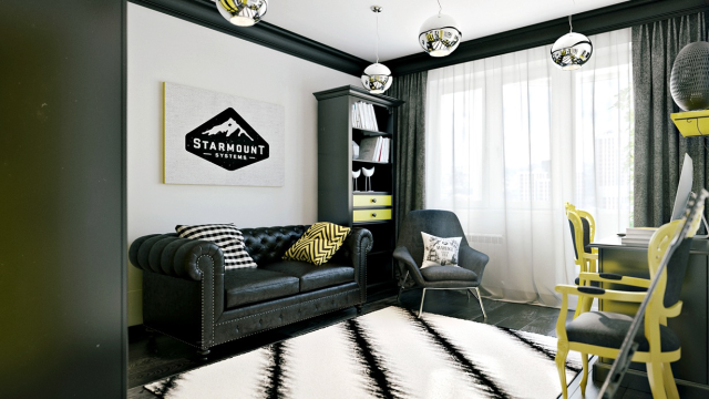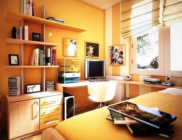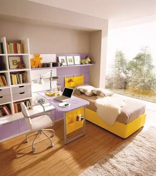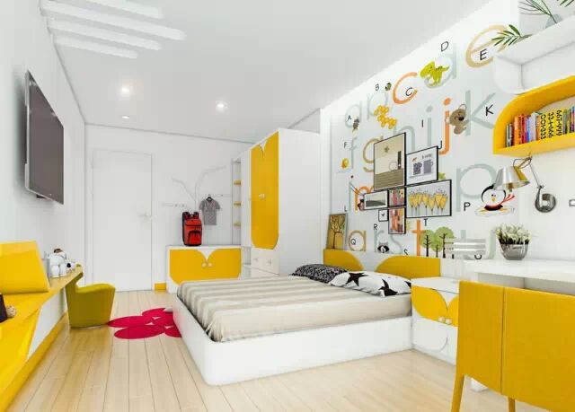 黑色和黄色的对比运用非常大胆。学习区和沙发给有创意的青少年一个理想的创新地。