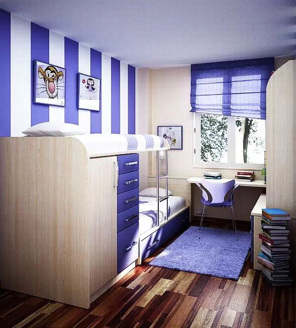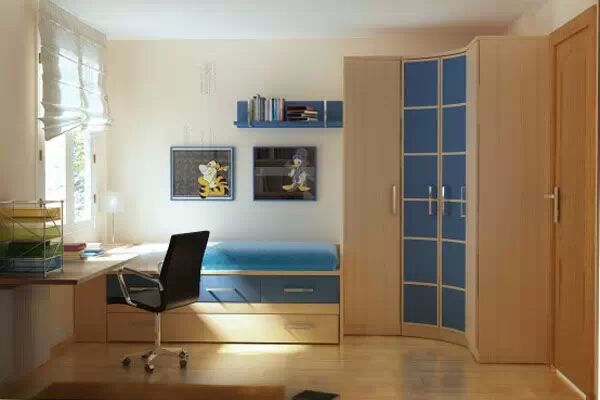 学校宿舍式的设计,上面是床,下面是书桌,比较节省空间。
