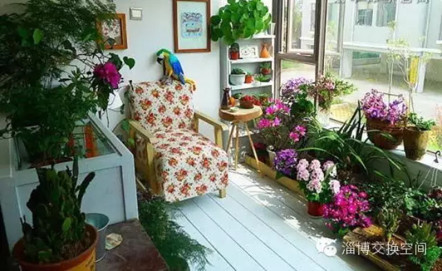收纳tips:百花齐放的阳台不禁令人沉浸在一片美好春色中,令人赏心悦目,心情愉快。墙面搁板则用来收纳书籍、杯子等杂物,方便需求,又能很好的归纳杂物,不破坏花园式阳台的美感。