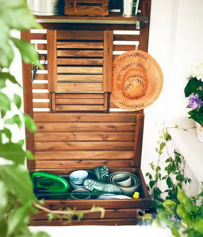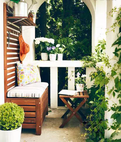 收纳tips:如果想要纯净的绿色空间,收纳型的阳台家具就能派上大用场,杂物通通隐形起来,还阳台一个绿色自然的有氧空间。