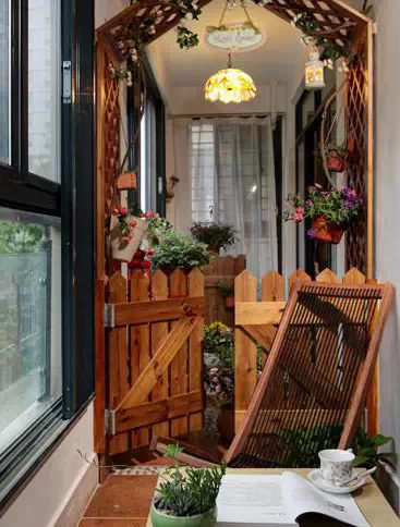 收纳tips:盛开的花朵盆栽,悬挂在古朴的装饰门两边,显得别出心裁。花园式的装扮,让狭长窄小的阳台焕然一新,这一刻只想暂时逃离都市,在这里享受内心的宁静。