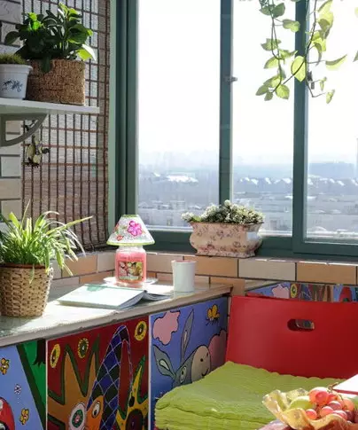 收纳tips:木质座椅,在座椅上方预留出搁板来收纳喷洒花器、抹布等物品,为小阳台节省了不少地面空间。绿意环绕的小阳台,搭配碎花的抱枕,清凉十足,活力无限。