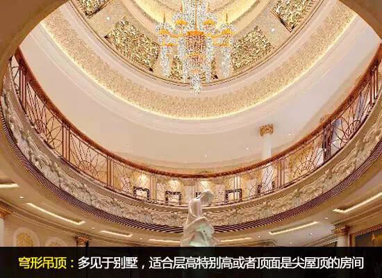 视觉特点:穹形吊顶即拱形或盖形吊顶。