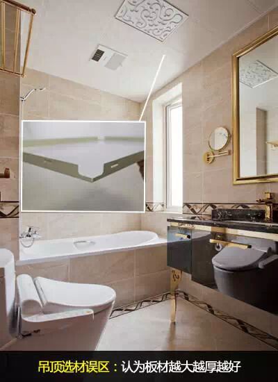 不同吊顶材料的特点不同,选购方法自然有差别。要选到优质合适的板材,建议业主在选购前做好知识准备,了解清楚不同板材的选购方法,选购时,注意选择品牌信誉度较高的产品。此外,选购的时候注意避免走入下面几个误区。