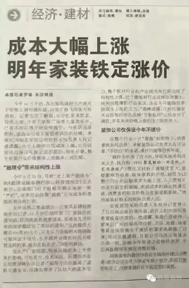 所以现在想要装修的抓紧时间选择一家正规装修公司,在其涨价之前赶紧下单,从而把成本控制在可以接受的范围之内。