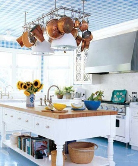 这样的厨房是不是很具有海洋的气息,顶部的蓝白格纹展现出非同凡响的美丽,让人忍不住的就像眼睛向上。地面上具有海洋特点的彩绘地板给厨房增添不少的俏皮感。