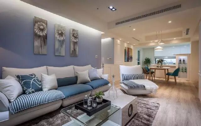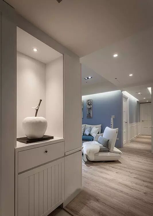 这是一套102㎡的三居室,整体色调清新和煦,简约的设计减少了不必要的装饰,增加很多的收纳机能空间,简化生活物品过多的杂乱感,仿佛在云端。