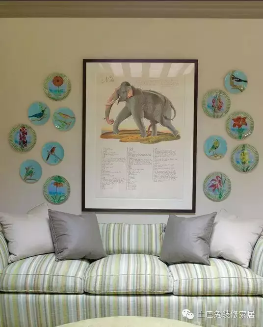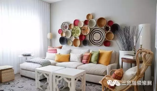 如果你嫌挂画太OUT,不如试试现在流行的挂盘方案吧。精致的挂盘装饰而成的墙面画富有层次感,添加不同的花色呈现出不同的风格。各种颜色,图案和大小的盘子能够呈现出不同的效果,或高贵典雅,或行云流水,或俏皮可爱。
