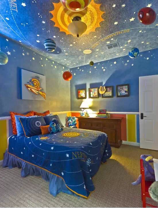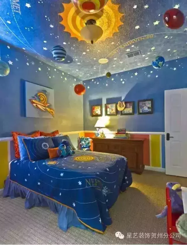 室内屋顶可根据孩子性格活泼程度来选取适合的造型吊顶。如儿童房的造型吊顶可以像星空一般装饰屋顶,也可以用木质吊顶打造自然生态感。