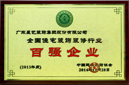 9、一不小心,星艺装饰被中国建筑装饰行业协会授予“全国住宅装饰装修行业百强企业”称号。