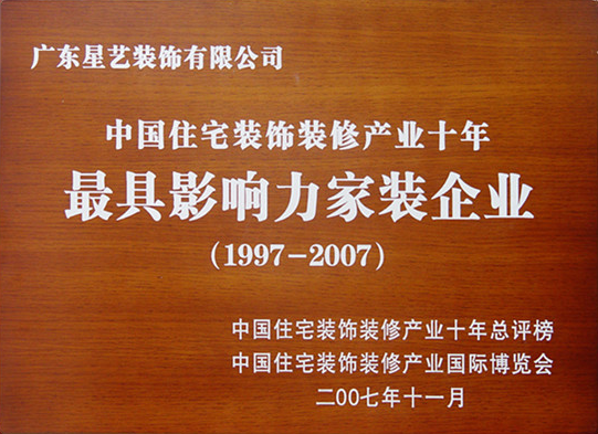 10、一不小心,星艺装饰在中国住宅装饰装修产业总评榜评选中,荣获“最具影响力家装企业”。