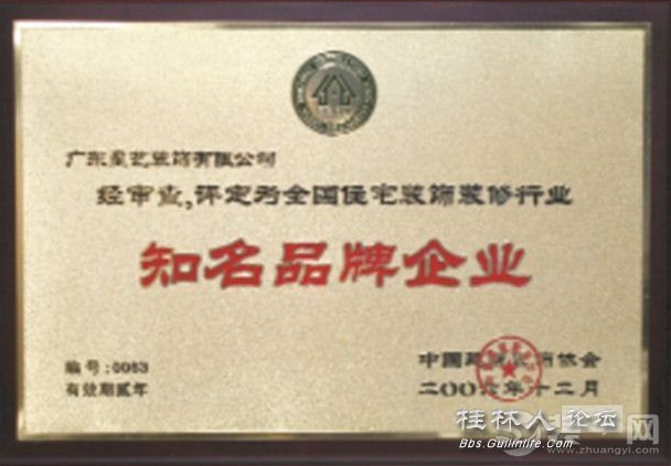 5、一不小心,星艺装饰被广东省装饰行业协会评为“2005年度广东省装饰行业诚信企业”。