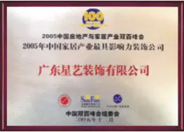 4、一不小心,星艺装饰被中国双百峰会组委会评为“2005年中国家居产业最具影响力装饰公司”。