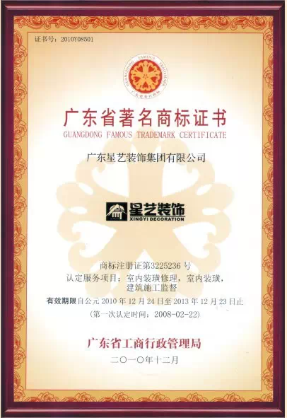 7、一不小心吗,星艺装饰荣获了“广州市著名商标”。