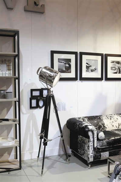 近年来,带有工业感觉和复古味道的柔光灯受到追捧,这款木质和金属组合的灯也带给人“穿越”的感觉。似乎是在片场,又或是在摄影棚,银色和黑色的搭配也充满了时代感。搭配空间里黑白皮沙发,既是空间里的装饰,柔柔的光线又能满足照明的需要。