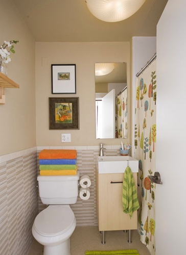 小编的话:清爽的色彩总是能提升空间的亮丽度。狭长的卫浴空间放下座便器以及小巧的台盆刚刚好,一边拦出一个小空间,挂上帘子就是淋浴区了。