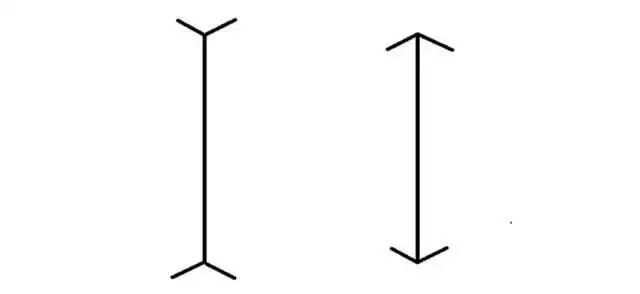 这两条竖线你们在感觉上哪条竖线会更长?是不是左侧让人感觉上更长一些。