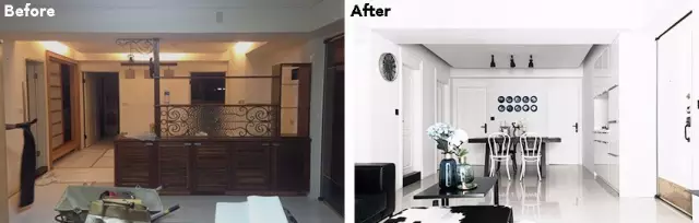 改装前后对比图可见,居所的风格产生了翻天覆地的变化。