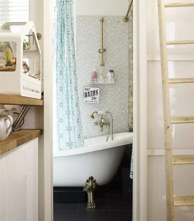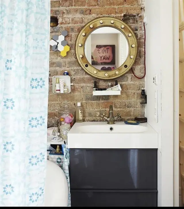 不必担心这种粗糙的表现手法会弄得像你的房子没施工完,适当保留建筑的原始样貌反而会让整体空间多了一分工业感,更有特色,而且能起到转移注意的作用,例如Eleonore家的浴室,真的是很小很挤,浴缸紧挨着洗手台,如果用白墙或者是瓷砖,会逊色不少,但现在以砖墙为背景,加上设计感的装饰,感觉马上就不一样了。