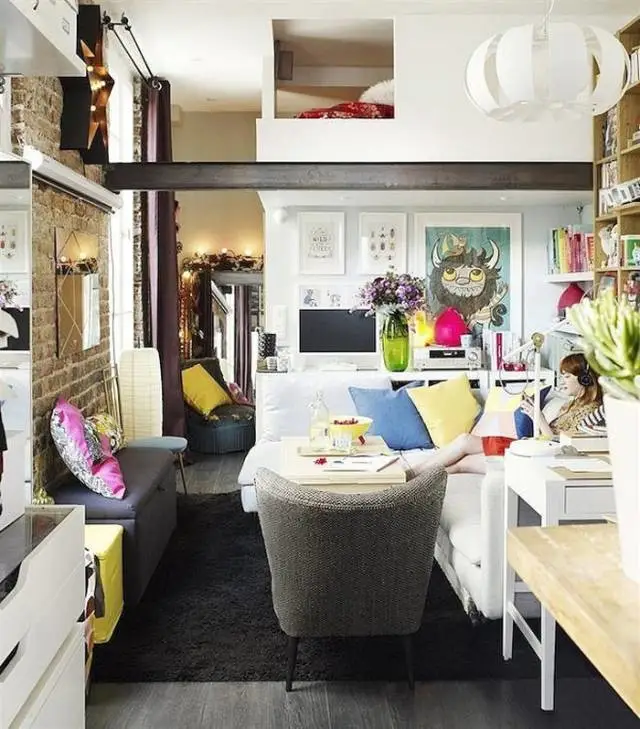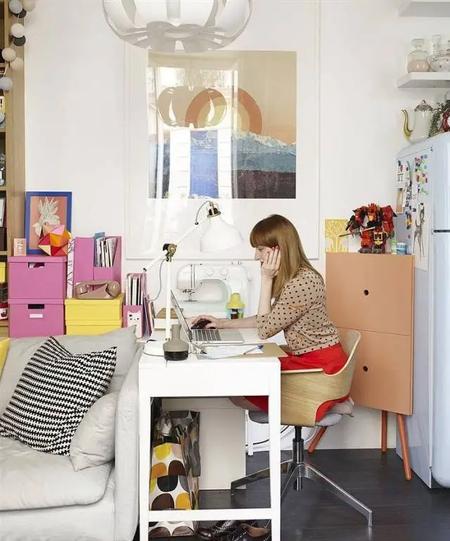 想让家里的气氛变得活跃,很多人都想到用缤纷颜色这一招,但要怎样做才不会让人视觉疲劳呢?使用丰富色彩的前提是你必须保证一个平和素色的基调。比方说她的小公寓,基调是白色,然后再用彩色的细节装饰,这种情况下,即使颜色很多,也能很好的融合。