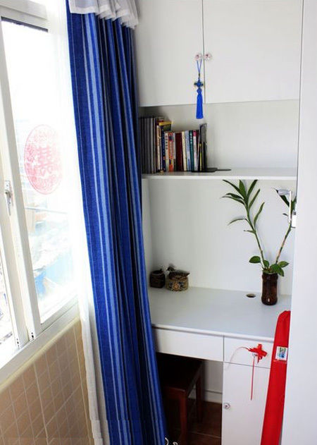 如果因家庭住房较为紧张而需要把阳可进行全封闭而安排成孩子卧室或书房的话,也要下一番功夫巧妙构思,使之既实用又美观。即使是把阳台作为家庭的储藏空间,也要根据实际情况和阳台条件去设计装修及陈设方式,切忌“室内室外两重天”,因与室内装饰不般配而显得不伦不类。