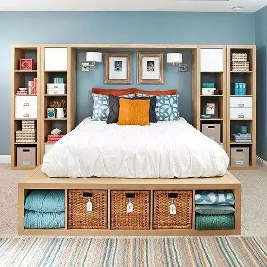 床下位置别空着,换季的衣服、孩子丢掉的玩具装好后都能塞到床底下,看起来整整齐齐