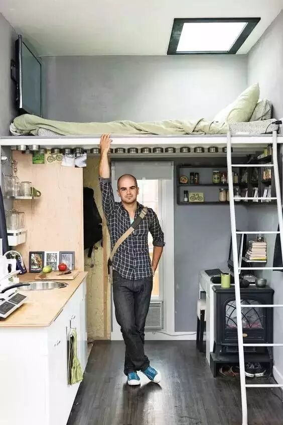 谁说床一定要紧贴地板放?和天花板离得近点如何?多出来的空间又是一间房!
