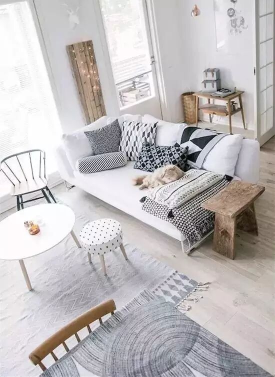 小块地毯将空间分割成无数小片,看起来更空阔。