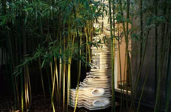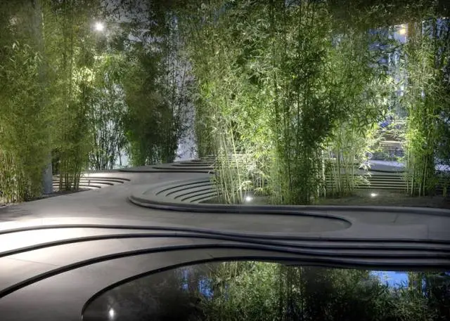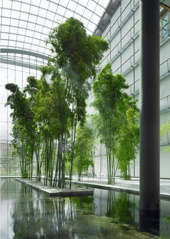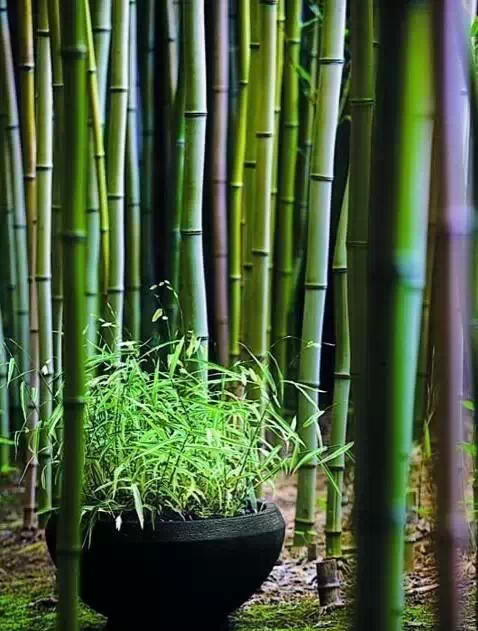 应用丛生型的竹类,如绿竹等,在空间中衬托或指引出景物,使得景物因其株形大小、形态外貌、色泽和质地更增添优雅。