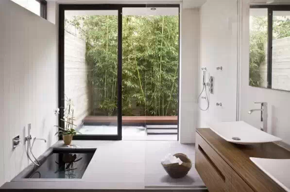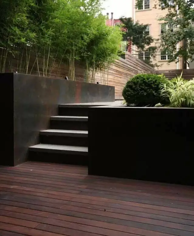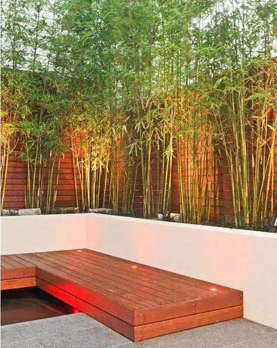 以竹类做绿篱,可为修剪过的植物造型与建筑物的外观相呼应,使周围环境更为协调。