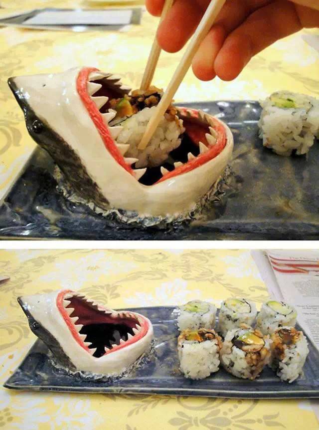 ■ 鲨鱼形寿司盘。真是鲨口夺食啊~