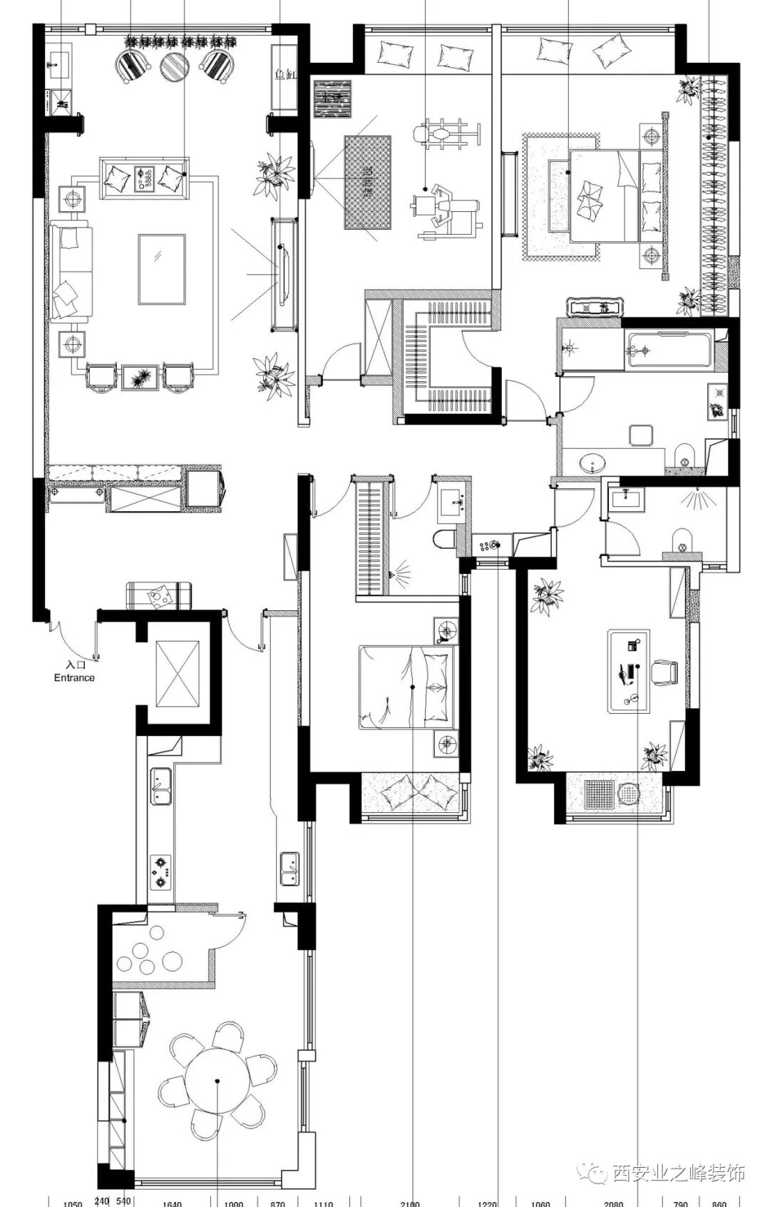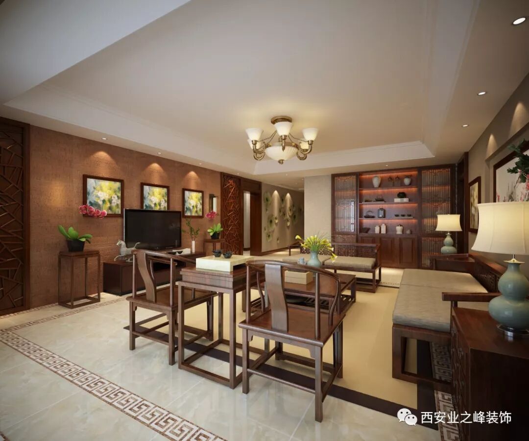 以新潮的现代设计理念,将随手拈来的中式古典元素融于其中,看似漫不经心的搭配,却深谙古典精髓意蕴,本案设计构思严谨,用色稳健大气,色彩上以代表稳重、成熟的马鞍棕为底色,配以理智、安详的藏蓝,彰显出高档的空间格调。空间上运用灯光和墙面造型把控室内气氛,营造出静谧、祥和的居家环境,具有使人沉浸其中,细细品读的悠长韵味。