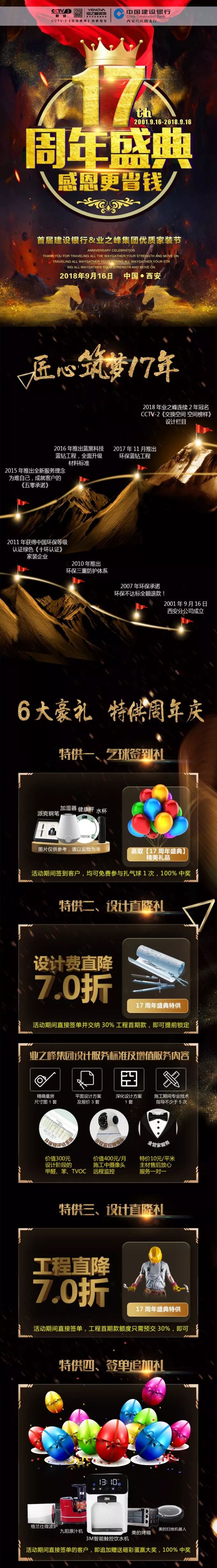 值此隆重庆祝业之峰集团西安分公司成立17周年之际,为将更环保的高端装饰服务进行到底,答谢三秦父老的支持与厚爱,业之峰携手建设银行隆重推出优质家装节回馈活动,凡在2018年9月16日活动当天签单的业主,工程首期款额度只需交纳30%,即可锁定如下优惠。
