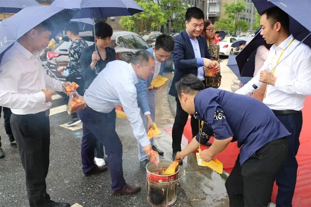 金狮点睛是公司开业典礼重头戏,由公司总裁徐玮先生、建德分公司总经理余施辰先生给金狮点睛,赋予了其生命、灵性,带来了吉祥如意的好兆头,