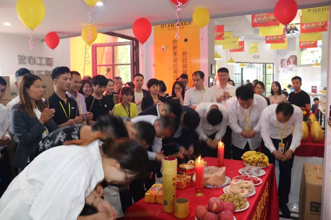上午九点半开业仪式正式开始,博舟企业总裁徐玮先生、建德分公司总经理余施辰先生、各分公司总经理以及建德公司全体员工,点蜡烛、上香、拜财神,祈祷世邦美住装饰建德分公司开业大吉、生意兴隆,财源滚滚来。