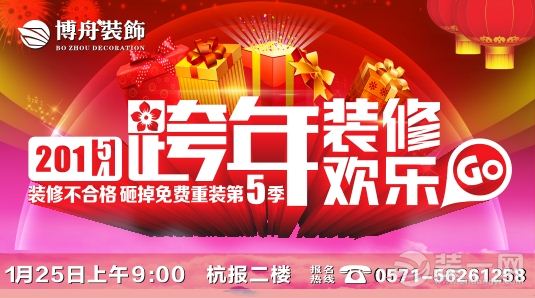 1月25日,博舟装饰开年巨献,再次携手搜房网、《装修深一度》等杭城知名网络媒体平台,举办年初家装盛世,齐力回馈杭城新老业主的支持与鼓励!在过去的2014年里,因为有你们,才使得我们能够稳步前进,不断突破。2015年,我们也会更加努力,营造更放心、更全面、更系统、更便捷的装修消费环境,为每一位选择我们的业主提供更周到贴心的服务。