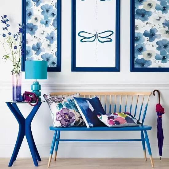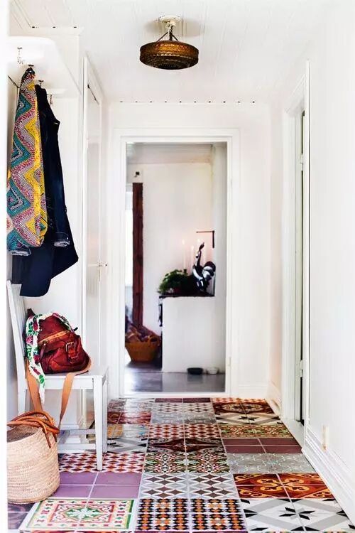 时尚的桌椅,色彩大胆的物品装饰让这狭窄的玄关绽放光彩,真是收纳与美观兼具。