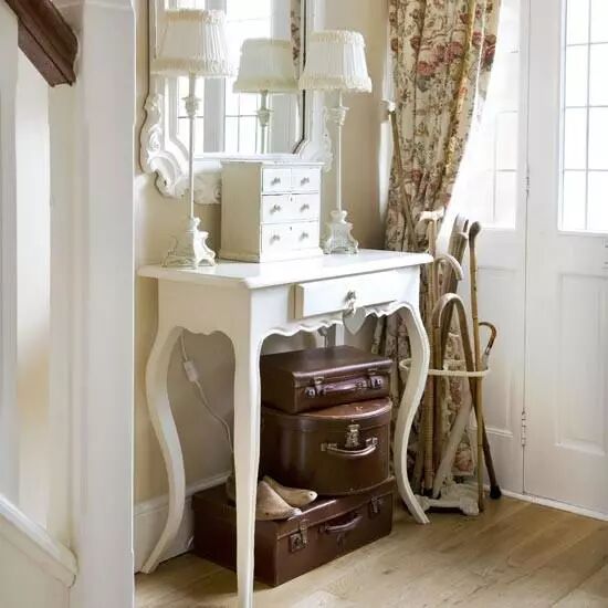 田园风格的玄关桌搭配上朴实自然格调的窗帘瞬间提升了空间的甜美度。