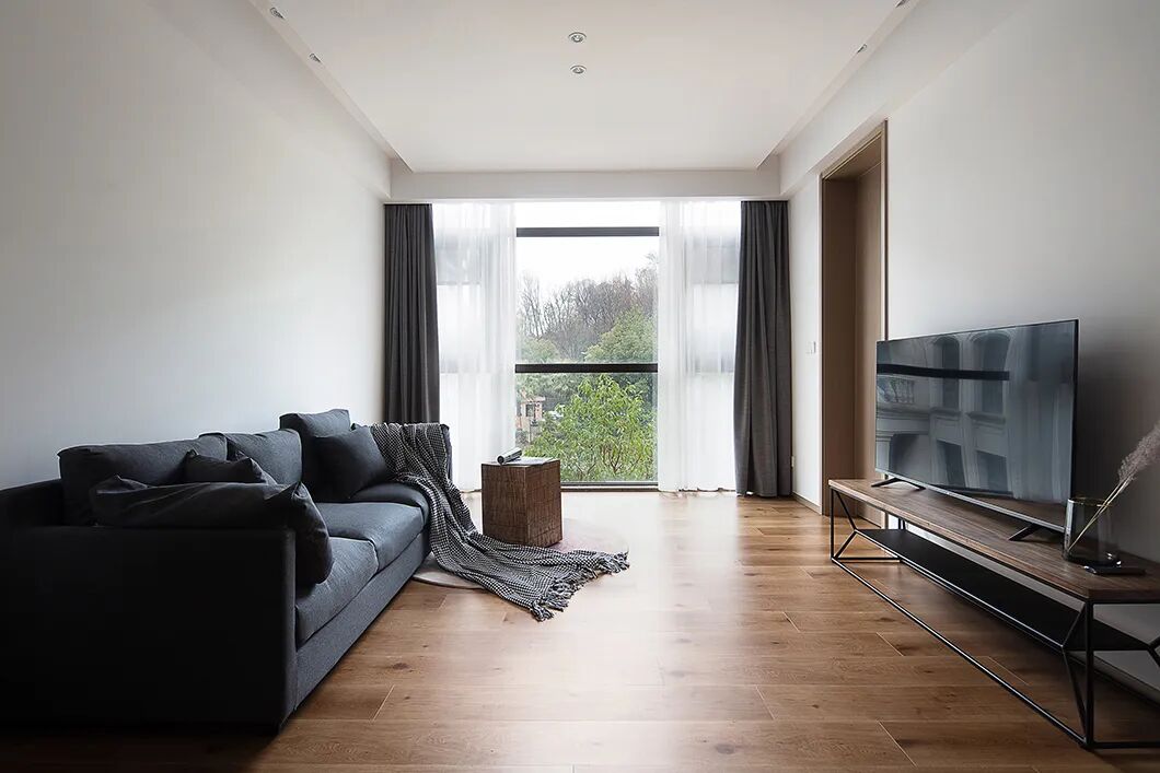 客厅保持理性而精简的装饰,强调一种简练的高级感,尽量不增加多余无用的装置,打造简约而不简单的高级质感。