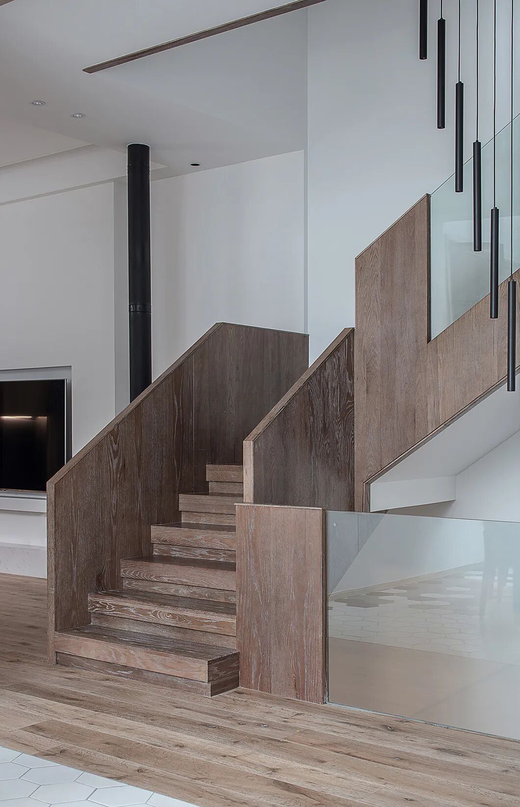 楼梯是视觉的焦点,好的楼梯设计一定是豪宅空间的点睛之笔。设计时遵循、安全、美观、舒适、实用的原则展开,可以成为空间中的艺术品之一。