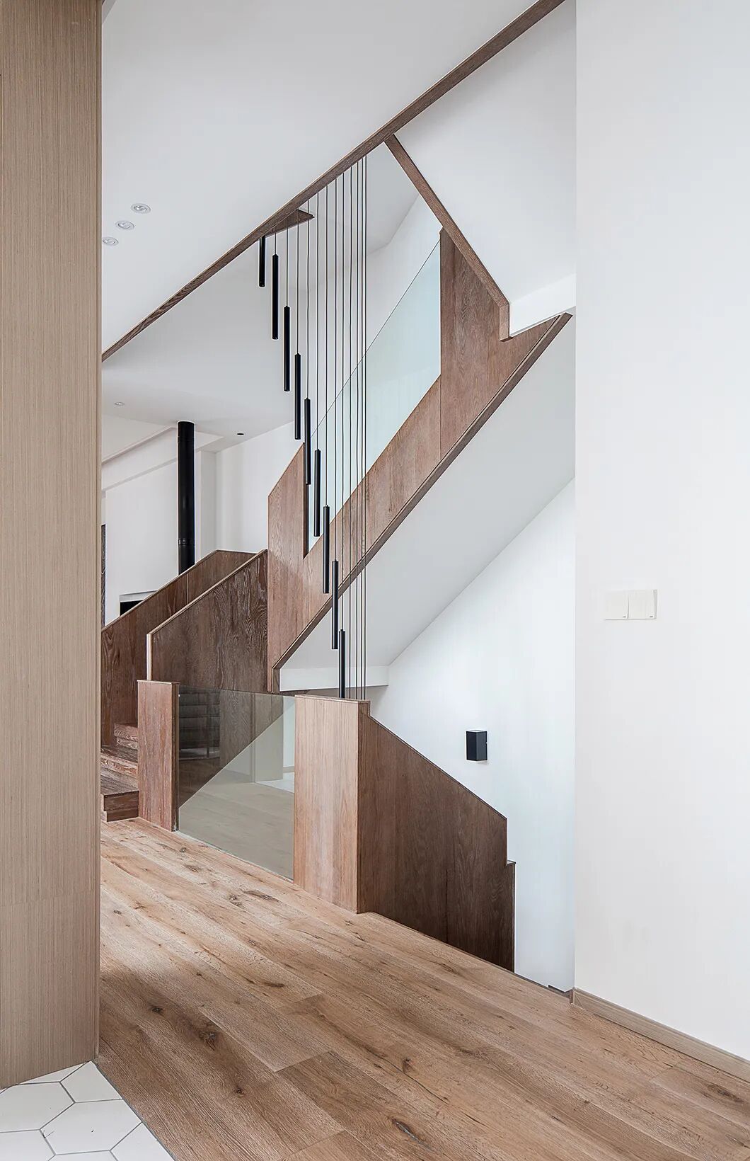 二层部分则为父母房空间及儿子房的私领域空间,循着原木色的楼梯,营造丰盈气质的轻雅风,独立而静谧。