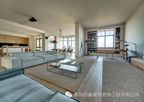 装修TIPS:灰白的麻布地毯为简约风格增添了不可或缺的一笔。