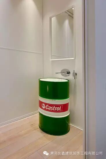 装修TIPS:最有特色的要数洗手间的洗手台,做成汽油桶的形状,个性十足。